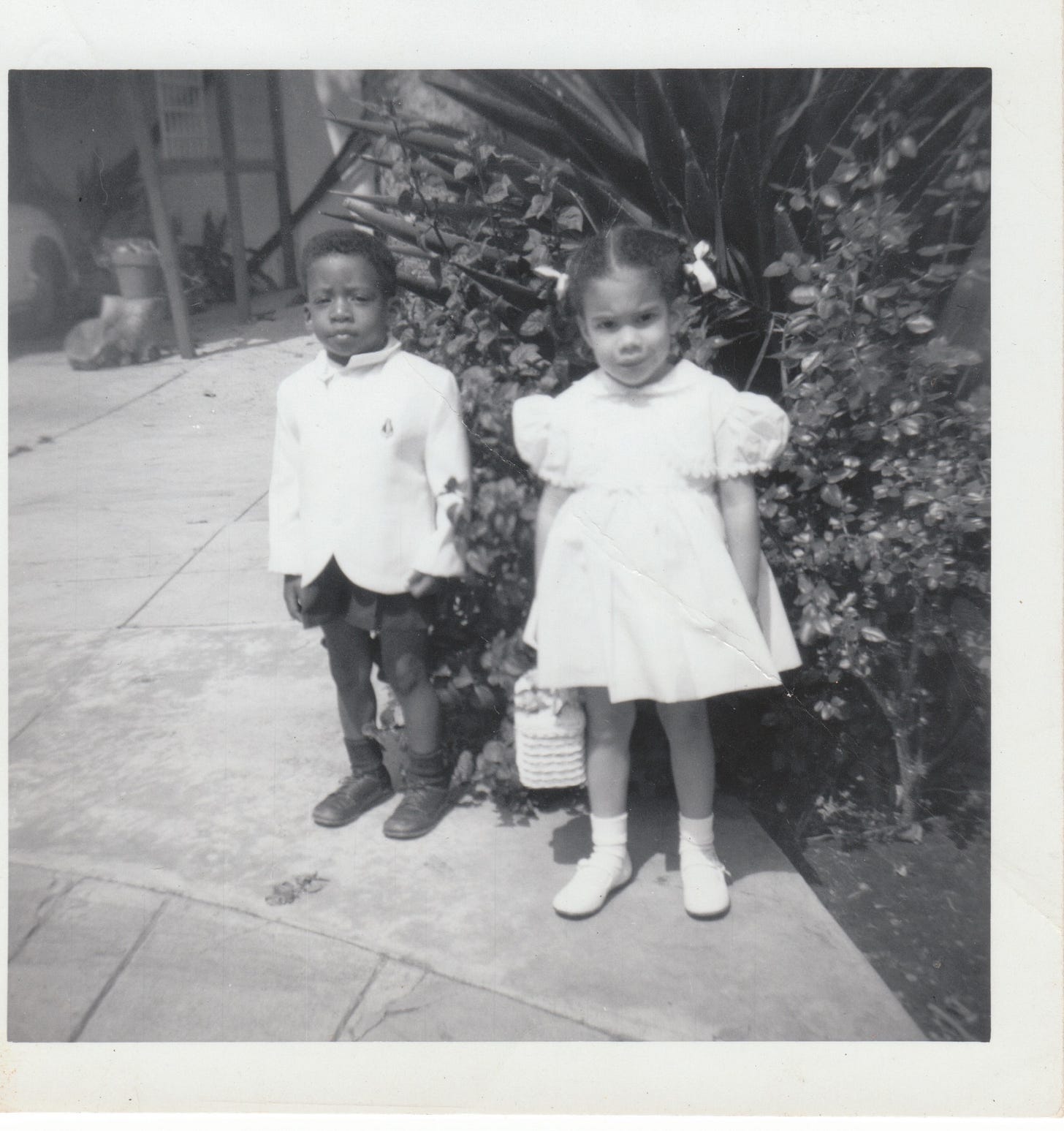 That’s me with Amanda Prentiss. We used to call her ‘Mouse’. She lived in Silverlake on one of those very steep hills. They had a Japanese garden and a banana tree in her backyard. That’s where we had the Easter egg hunt later that day. What’s strange about this picture is that I didn’t realize until today that the front fender of my father’s Porsche could be seen in the carport. Nor did I recognize that my jacket collar was undone.
