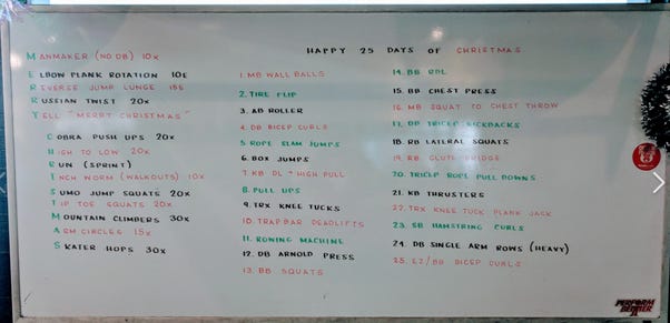 It took me about 9 months to get to 200. I lost two bowling balls of lard I had been carrying around on my body and in my mind. But now I could stretch, I could run (with my knee brace), I could do 10 burpees any time. I could box jump 30 inches. I could do 40 different exercises and go go go. I was motivated not to lose and to contribute to the esprit de corps of all of the people in the gym, with its awful dance music. I was a beast on the battle ropes. I was horrible at V-ups. But when I first started I couldn’t do 30 seconds of mountain climbers.