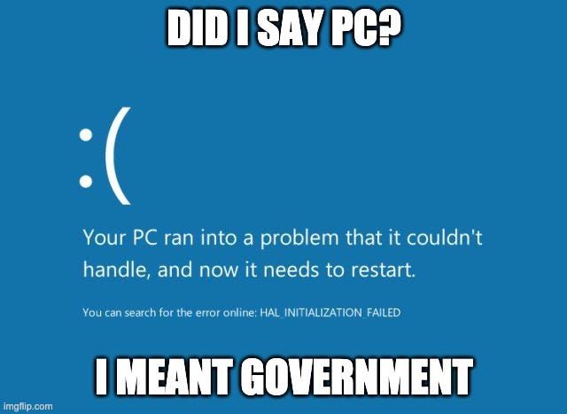 Washington DC crashed and is rebooting as we speak. I predict a hasty workaround, some kicking of various cans down the road, adjustment in rhetoric and declaration of a new normal. This play acted revolution will be all be televised for your partisan delights, where ever you stand (or sit). I’m still not watching.