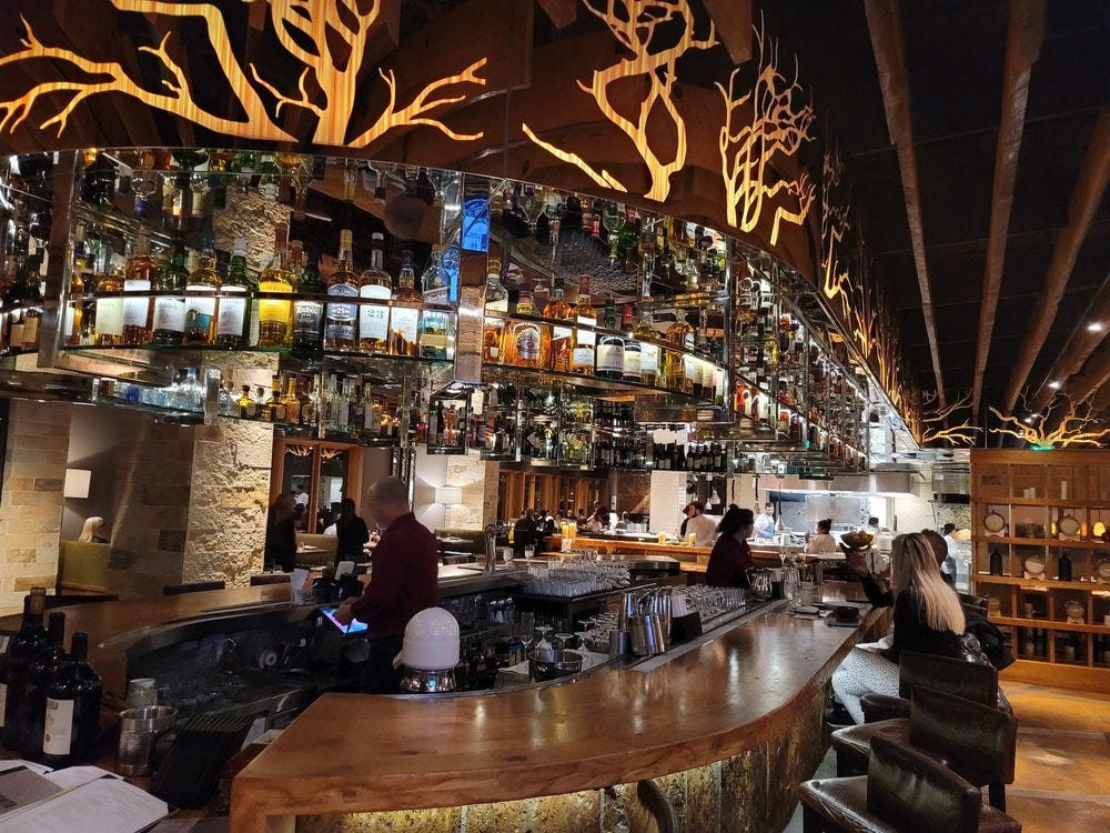 An Old Fashioned and Eggs Benedict taste excellent and those peasants who prepared it for me at three times what it would take for me to prepare them myself, to keep the overhead of this luxurious place, gave me the right smiles to my peasant order, small talk and comfortable attitude. They were patient and kind, I was generous and gracious. This edifice, as I peered around after a well-delivered joke’s laughter subsided, will pass from one wealthy corporation to the next until the bombs fall and burn every tree to the root. Because it’s done right. Because this is what humans will always want. Like sex and oxygen, we all know how to take all we can get. It will always feel right. This is part and parcel of the essence of being alive; luxury is inevitably what everyone wants, and everyone fits right into its comfortable silky snugness.