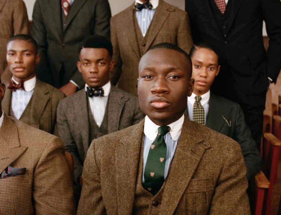 The worst thing any respectable critic can say about Lauren’s new Morehouse and Spelman collection is that it hardly looks like a spring collection and more like a fall collection. Beyond that, he’s 25 years behind Denzel’s film. Oh yeah and that it’s ridiculously overpriced. On the other hand, aesthetically and culturally speaking, as Lauren works to speak to the timeless, he has oh so nailed it. These, my pedigree chums, are old school clothes for Old School ladies and gents. And believe you me, although you may have never heard of Melvin B. Tolson or Wiley College, much less their style and comportment, we over here have. Those are our parents and grandparents and we are what they wanted us to be.