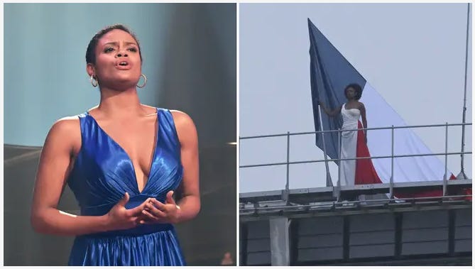 My brother Doc over in Cambodia suffers from their Chinese overlords of information and has found that he hates the Olympics. No freaking way. He reported to me that the only world record broken was by some Chinese 19 year old swimmer. Say what? I found the blather and cringe of the Opening Ceremonies as distasteful as anyone, save the one classical singer atop the Grand Palais, Axelle Saint-Cirel. She killed it.