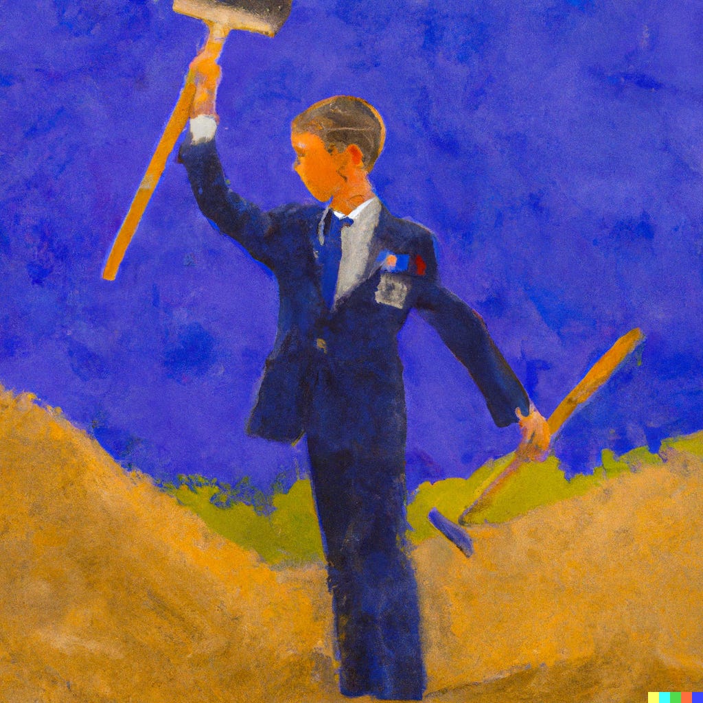 It struck me during this minor catastrophe that all of the time, money, documentary work, licensing, patent filing and other business of invention could have been ignored in favor of employing a dozen young people. It would have given them the thrill and honor of their lives to do the same boring manual labor of leveling long jump pits that was the tradition of the modern Olympic Games.