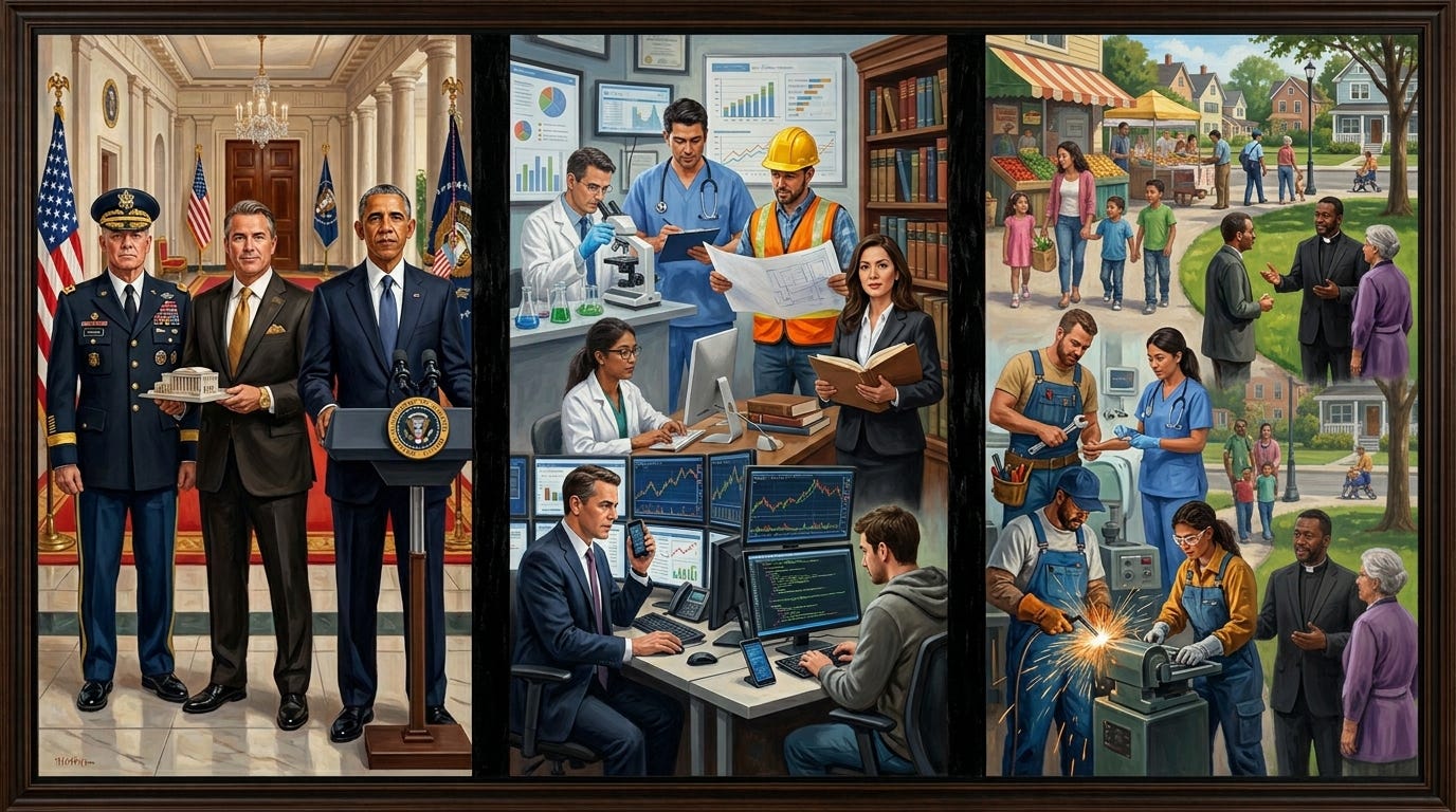 Peasant Class: The majority working or middle class, which sustains society but lacks elite power.
