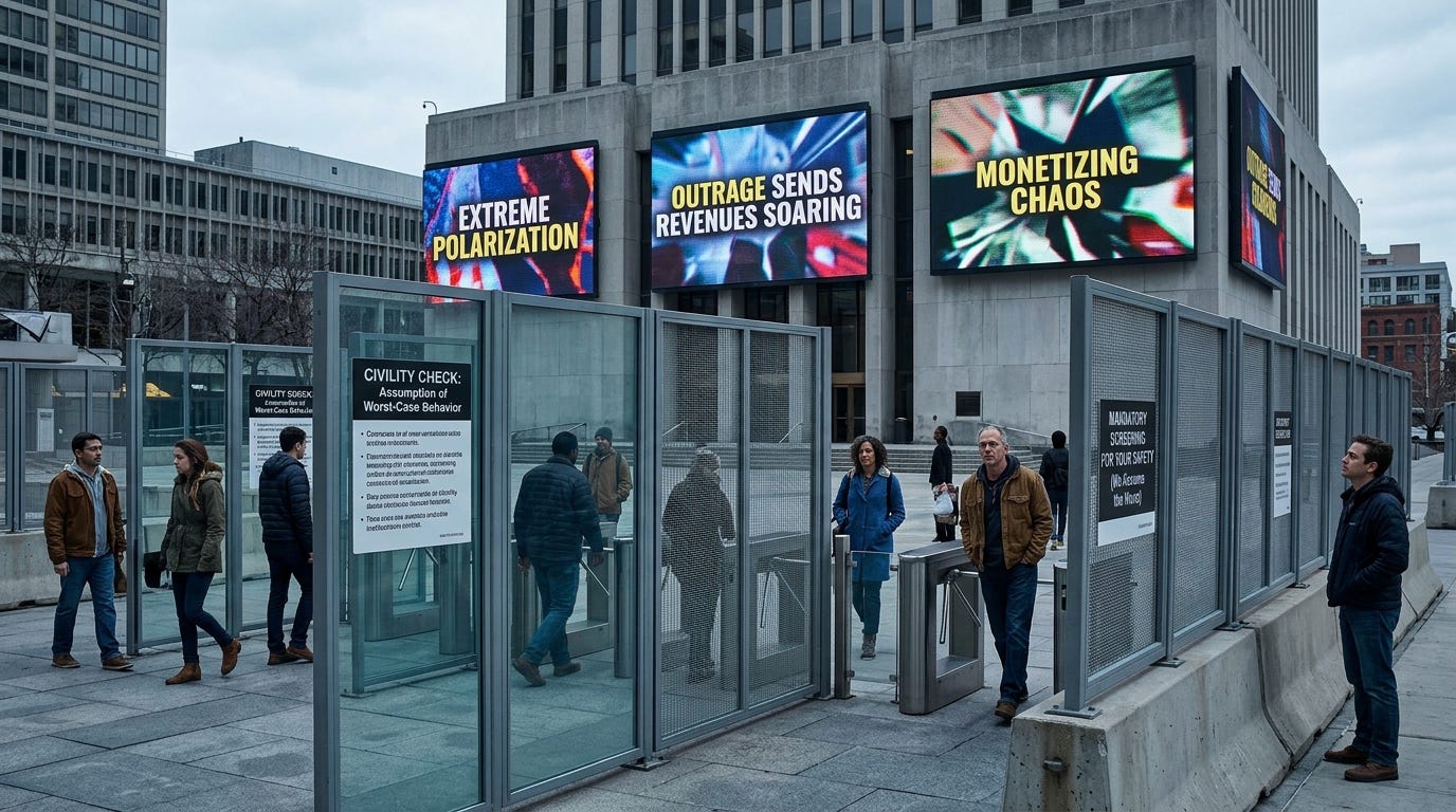 Society’s response is to erect barriers and screens designed to protect from these extremes, but these measures often insult the average person’s intelligence and civility, assuming worst-case behaviors rather than defaulting to common decency.